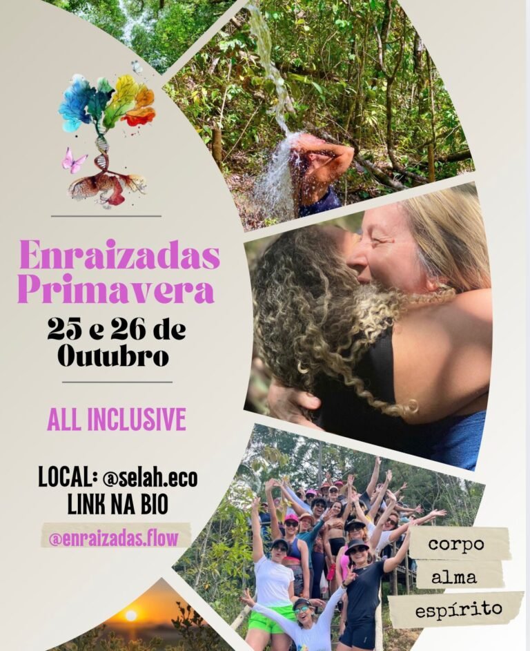O encontro Enraizadas é um evento voltado para o cuidado integral das mulheres, trabalhando corpo, alma e espírito. Venha viver uma experiência transformadora de autocuidado e restauração.